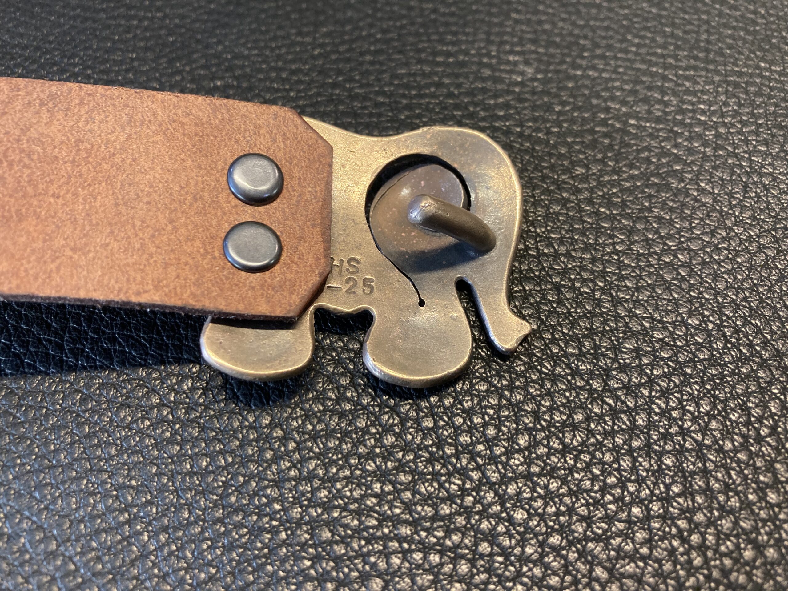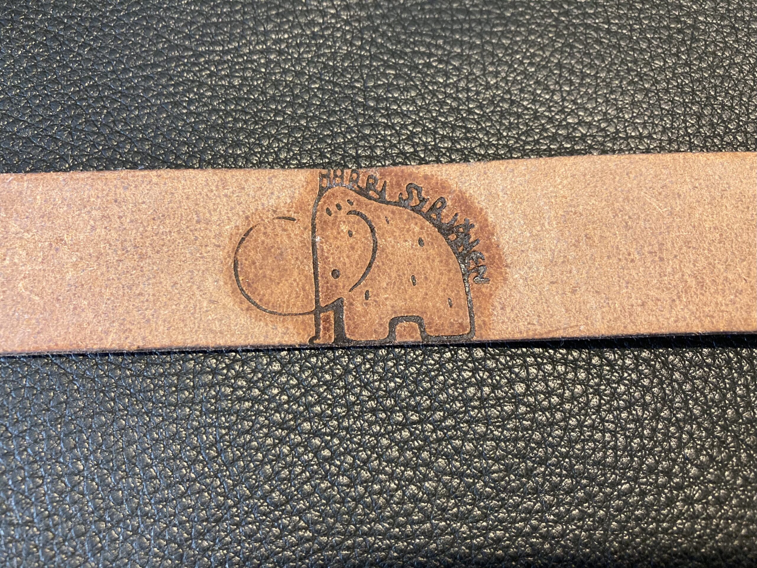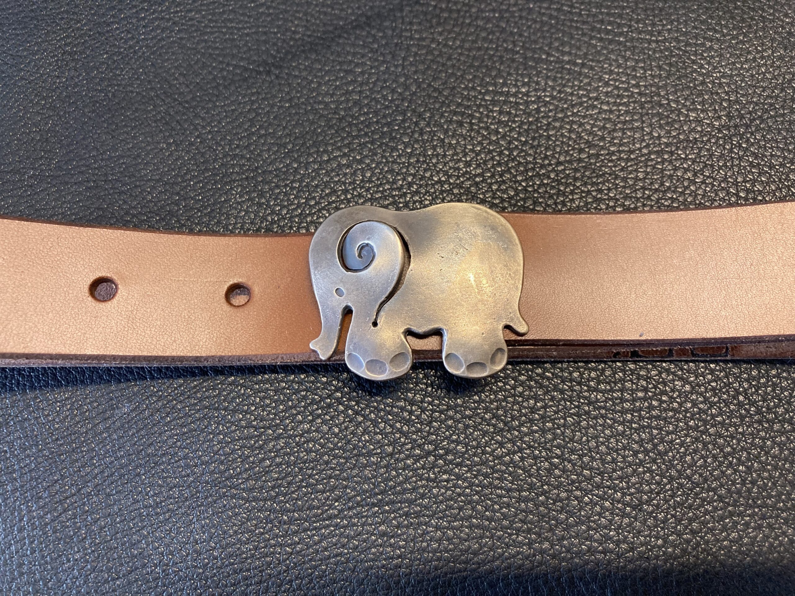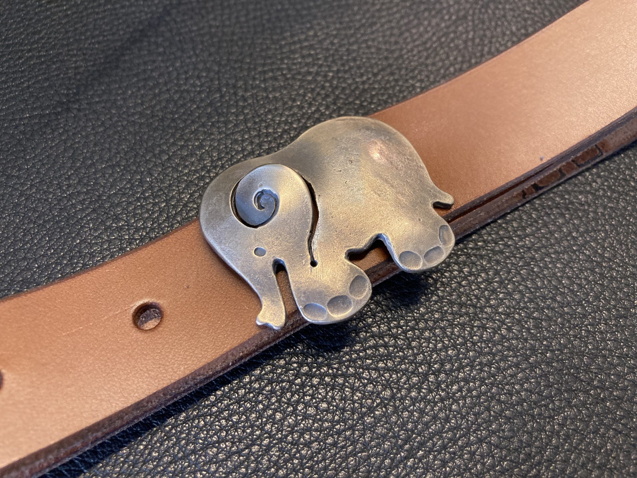 Elefantti ”Fantti” vyö. Pronssisolki .Vahvaa parkkinahkaa, paksuus 2,4 mm leveys 28 mm, pituus 115 cm, voit toivoa haluamaasi pituutta, väri keski ruskea, saa myös mustana.